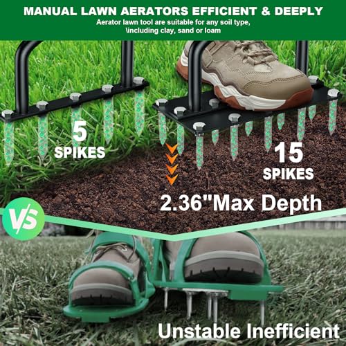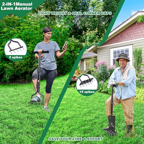 - 2-in-1 Design: Kombinierbar als 15-Spitzen-Rasenbelüfter oder tragbarer 5-Spitzen-Rasenspecht