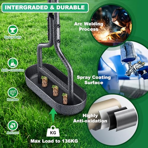 EEIEER Rasenlüfter, Rasenbelüfter Aerifizierer für Rasen Hohlspoon mit Ablageschale Gebogener Kante, T-Griff Rasenspecht Heavy Duty Handvertikutierer Rasen Belüften für Verdichtete Böden Rasenpflege
