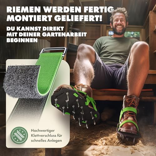 | Features | ✅ 𝟯 𝗘𝗫𝗧𝗥𝗔 𝗦𝗧𝗔𝗥𝗞𝗘 𝗥𝗜𝗘𝗠𝗘𝗡 – Die 3 flexibel einstellbaren Riemen halten den Rasenlüfter durch die hochwertige Klettverschlüsse fest an den Schuhen. Die Hackenriemen sorgen dabei für extra Halt!, ✅ 𝗥𝗔𝗦𝗘𝗡𝗟Ü𝗙𝗧𝗘𝗥 + 𝗘𝗦𝗧𝗥𝗜𝗖𝗛𝗦𝗖𝗛𝗨𝗛𝗘 – Dank der mitgelieferten langen Nägel (55mm) lassen sich die Nagelschuhe sowohl als Rasenentlüfter als auch als Estrichschuhe auf der Baustelle ideal verwenden., ✅ 𝗗𝗘𝗥 𝗣𝗘𝗥𝗙𝗘𝗞𝗧𝗘 𝗥𝗔𝗦𝗘𝗡 – Vertikutieren Sie Ihren Rasen mit dem LAINFELD Rasenbelüfter für das perfekte Grün! Die Nagelschuhe sind die praktische Alternative zum Handvertikutierer!, ✅ 𝗣𝗘𝗥𝗙𝗘𝗞𝗧𝗘𝗦 𝗚𝗔𝗥𝗧𝗘𝗡𝗭𝗨𝗕𝗘𝗛Ö𝗥 – Die Rasenlüfter Schuhe passen für Schuhgröße 37 bis 48 und sind die kostengünstige Alternative zu teuren Motor- Vertikutieren, Aerifizieren oder einem Rasenspecht., ✅ 𝗟𝗔𝗜𝗡𝗙𝗘𝗟𝗗 𝗩𝗘𝗥𝗦𝗣𝗥𝗘𝗖𝗛𝗘𝗡 – Sollten Sie mit dem Rasenlüfter nicht zufrieden sein, erhalten Sie bis 60 Tage nach dem Kauf Ihr Geld zurück. Kontaktieren Sie bei Fragen sehr gern unseren Support! |