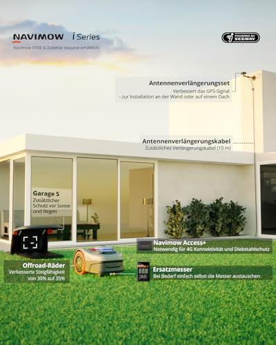 | Features | Legen Sie den Navimow i105E Mähroboter und das Access+ 4G Modul zusammen in den Einkaufswagen und Sie werden das Access+ 4G Modul geschenkt erhalten., RTK+Vision, funktionieren auch unter Bäumen: Mit der EFLS 2.0-Technologie ist Ihr Gartenlayout kein Problem mehr. Die RTK-Technologie mit KI-Verbesserung gewährleistet eine stabile Positionierung auf Zentimeterebene, um eine Vielzahl von Rasenlayouts zu bewältigen. Selbst unter Bäumen oder in engen Korridoren bietet die Vision verbesserte Standortdaten und sichert die genaue Position des Navimow-Mähroboters., Mähroboter ohne Begrenzungskabel & Automatische Kartierung mit KI: Die Einrichtung des Navimow-Rasenmäher Roboters erfolgt schnell und kabellos mit nur wenigen Fingertipps. Verwenden Sie einfach Ihr Smartphone, um Navimow zu steuern und virtuelle Grenzen rund um Ihren Rasen zu kartieren. Mit der revolutionären KI-gestützten Assist Mapping-Funktion erkennt Navimow während der Kartierung automatisch die Kanten Ihres Rasens und navigiert und kartiert den gesamten Arbeitsbereich, was die Einrichtung einfacher als je zuvor macht., Erkennt 150+ Arten von Hindernissen: Im Vergleich zu Ultraschallsensoren oder Stoßstangen kann die 140°-Sichtfeldkamera des Navimow-Rasenroboters mit integrierten KI-Algorithmen mehr als 150 Arten häufiger Objekte im Garten erkennen. Dadurch wird eine stärkere Hindernisvermeidungsfähigkeit und ein höheres Sicherheitsniveau gewährleistet., Mühelose Rasenpflege auf lhren Fingerspitzen mit der Navimow App & Multizonen-Management: Mit der Navimow-App können Sie die Mähkarte bearbeiten, verschiedene Zeitpläne festlegen, Ihren Rasenmäherroboter fernsteuern, den Mähfortschritt verfolgen und Ihren Mähroboter bei Bedarf (mit dem optionalen Zubehör Access+) lokalisieren, falls er gestohlen wurde. Sie können auch ganz einfach OTA-Updates herunterladen, um auf die neuesten Funktionen und Verbesserungen zuzugreifen., Lieferumfang: 1 * Navimow i105E Mähroboter ohne Begrenzungsdraht, 1 * Netzteil, 1 * Netzteilverlängerungskabel (10 m), 1 * Antennenverlängerungskabel (10 m), 10 * Stifte zur Befestigung des Verlängerungskabels, 1 * Ladestation & Installationsset, 1 * GNSS-Antennenset, 1 * Antenneninstallationsset, 9 * Ersatzklingen & Schrauben, 1 * Benutzermaterialset., Hinweis: Die Navimow i105E-Produkte und die zugehörigen Dienste (App, Aftersales und alle anderen produktbezogenen Dienste) gelten nur in Europa. |