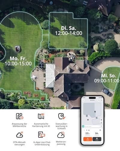 Die Möglichkeit, OTA-Updates herunterzuladen, sorgt dafür, dass dein Mähroboter immer auf dem neuesten Stand ist und neue Funktionen hinzufügen kann, was dessen Lebensdauer und Effizienz erhöht.