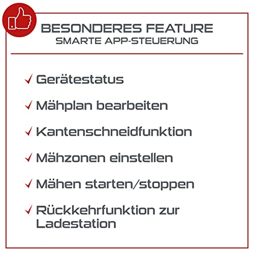 - Steuerbar über App mit Optionen wie Mähzeit und Regensensor