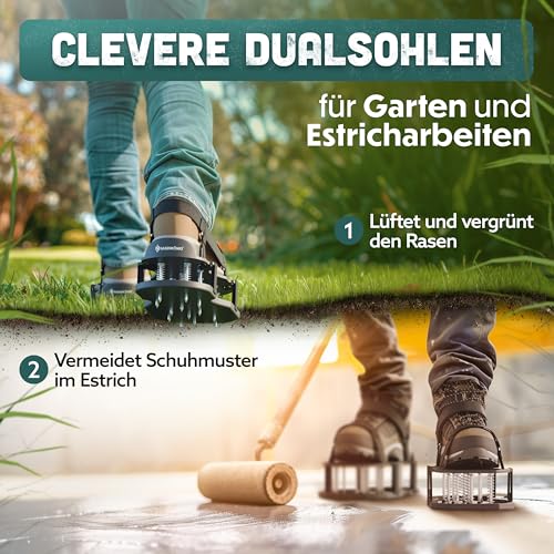 RASENKÖNIG Nagelschuhe Pro | Rasenlüfter Schuhe + Estrichschuhe | Rasenbelüfter Vertikutierer und Aerifizierer für Rasenbelüftung | Premium Rasenschuhe zum Rasen belüften und auflockern – vormontiert