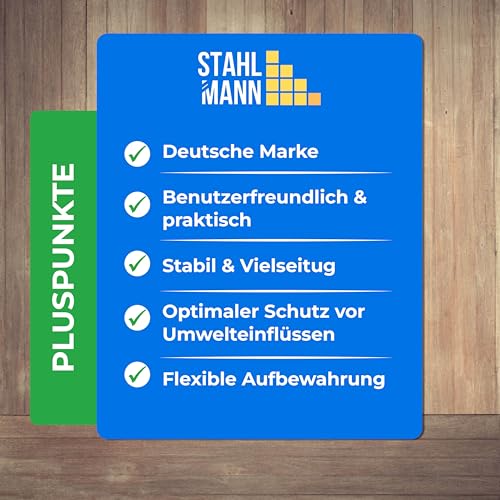 Die STAHLMANN Mähroboter Garage überzeugt durch ihre solide Verarbeitung und durchdachte Funktionalität. Mit ihrer hochwertigen Bauweise und der einfachen Handhabung bietet sie deinem Mähroboter einen optimalen Schutz, während sie gleichzeitig ästhetisch ansprechend im Garten integriert werden kann. Damit ist die Garage eine lohnenswerte Investition für jeden, der seinen Mähroboter langfristig erhalten möchte.