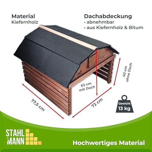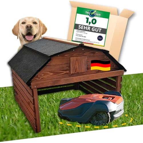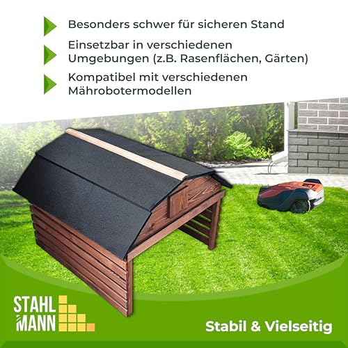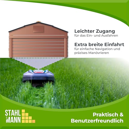 JETZT NEU! STAHLMANN® Mähroboter Garage aus Kiefernholz [77,5 x 73 x 63 cm] – Rasenroboter Garage BRAUN [wetterfest] Mähroboter Garage [MADE IN EUROPE]